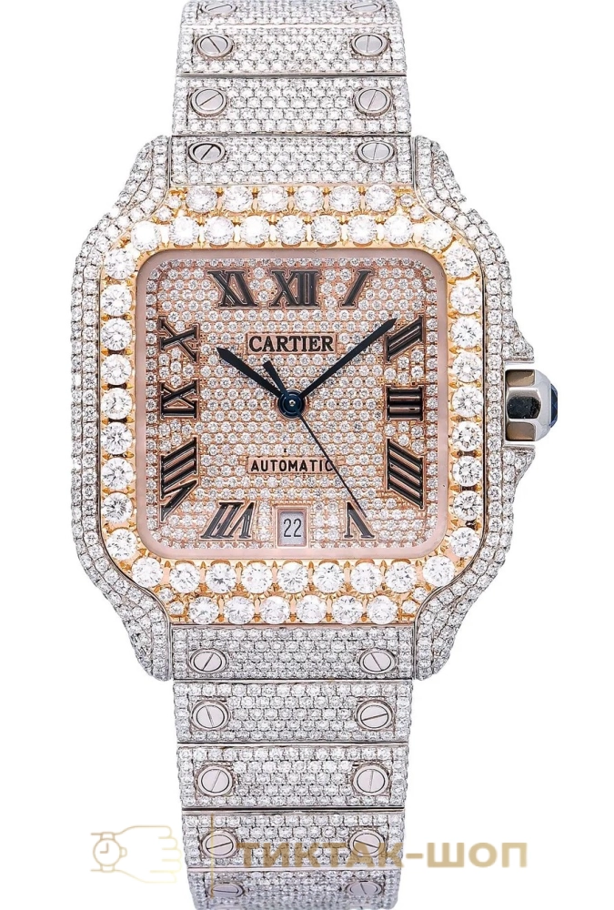 Часы Cartier Santos de Cartier Moissanite Rose Gold WSSA0018 Золотистый 32928